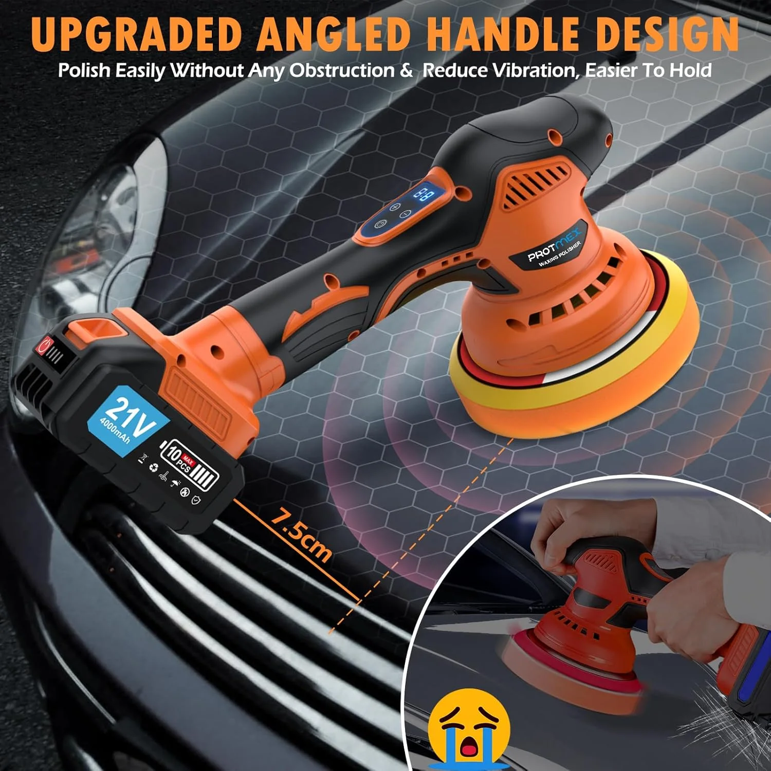 - 【𝗨𝗽𝗴𝗿𝗮𝗱𝗲𝗱 𝗘𝗰𝗰𝗲𝗻𝘁𝗿𝗶𝗰 𝗣𝗼𝗹𝗶𝘀𝗵𝗲𝗿 — 𝗖𝗼𝘃𝗲𝗿 𝗟𝗮𝗿𝗴𝗲𝗿 𝗣𝗼𝗹𝗶𝘀𝗵𝗶𝗻𝗴 𝗔𝗿𝗲𝗮 & 𝗣𝗿𝗼𝘁𝗲𝗰𝘁 𝗖𝗮𝗿 𝗣𝗮𝗶𝗻𝘁】The 6-inch car buffer polisher adopts an upgraded 9 mm double-acting orbital eccentric shaft design, premium pure copper motor, strong power, high polishing efficiency, low noise, and can effortlessly cover a wider polishing area and complete your work needs in a short time. Whether you are a professional technician, a beginner, or a car enthusiast, can improve your efficiency and bring an excellent appearance to your vehicle.