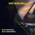 - Wide Beam: 120-degree beam angle with a 26-foot beam spread for extensive illumination.