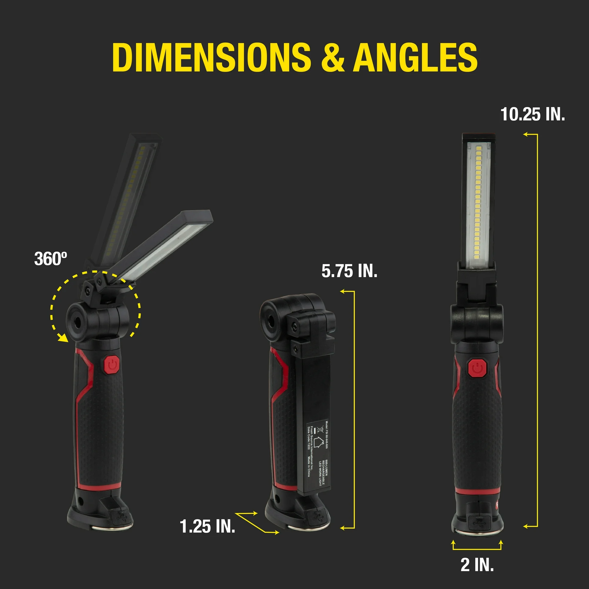 - Foldable Design: Foldable LED work light with a flexible head adjustable from 0-360 degrees.