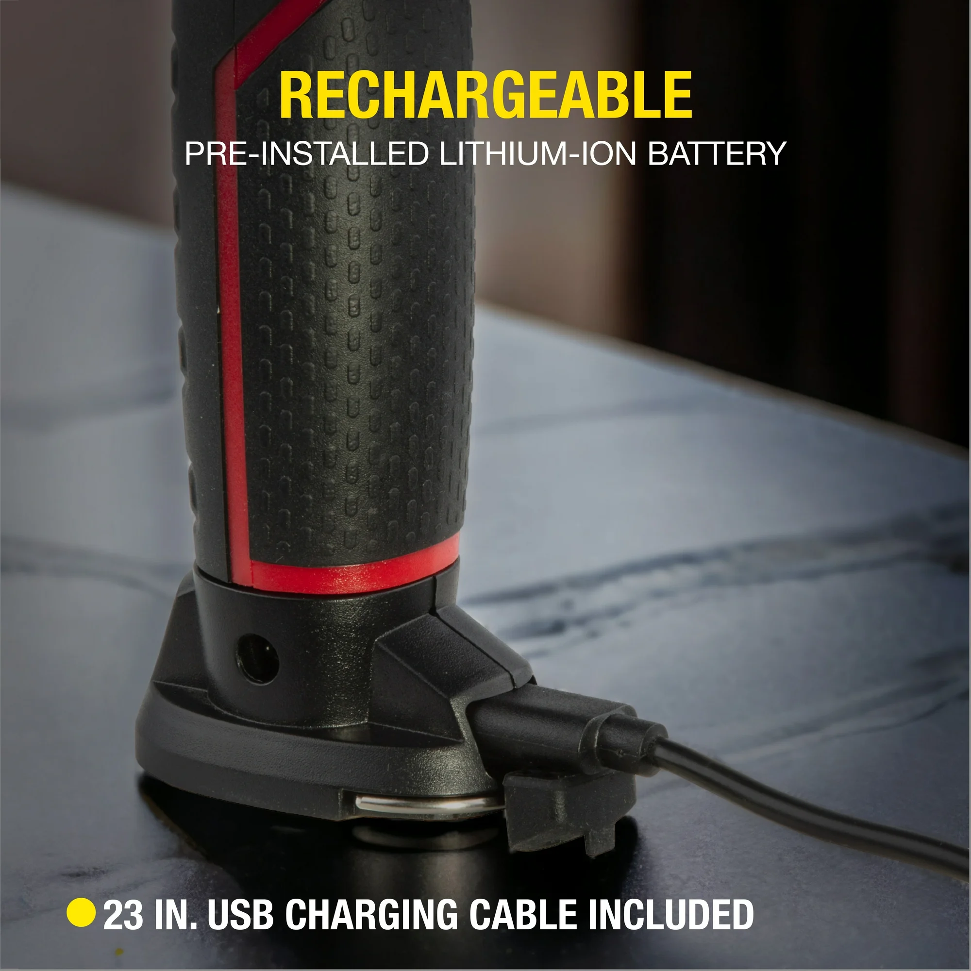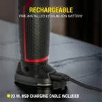 - Rechargeable Battery: Includes a pre-installed 3.7V 1800 mAh Lithium-ion battery and a 23″ USB charging cable.