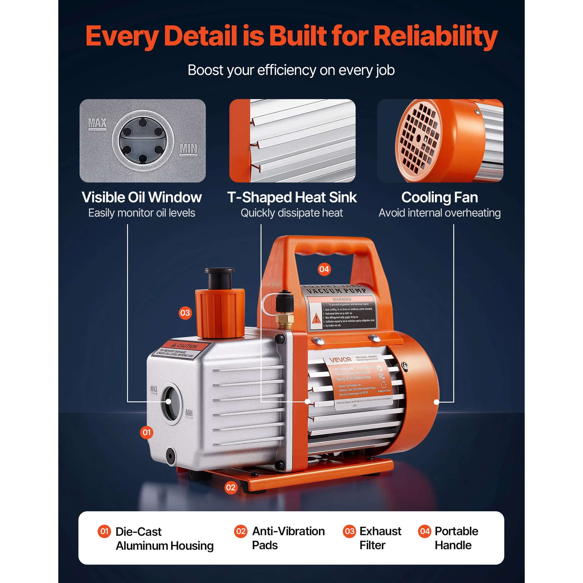 Be the first to review “VEVOR 4 CFM AC Vacuum Pump and Gauge Set, 13 HP, Single Stage Rotary Vane HVAC Air Vacuum Pump, AC Refrigerant Manifold Gauge Kit, with Leak Detector, Carry Bag, for R134a R22 R410a Refrigerants” Cancel reply